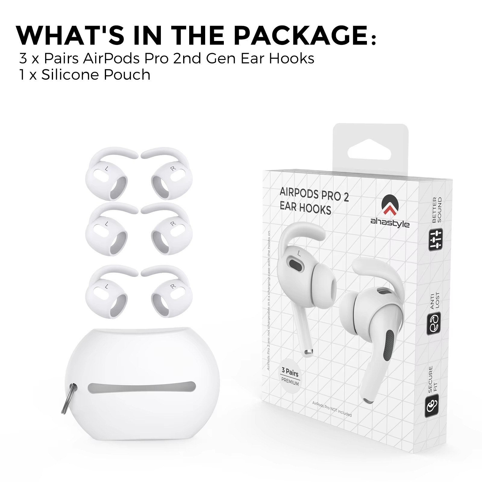 0 review(s) for "AhaStyle Silicone Earhooks for AirPods Pro2 3 Pairs Ear Hooks Covers Anti-Slip Ear Covers Added Storage Pouch Anti Slip"